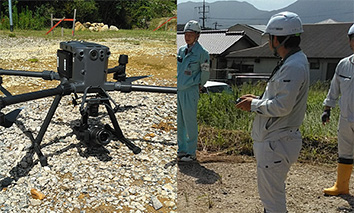 ドローンによる空中測量(UAV測量)、建設従事者教育を行っています。